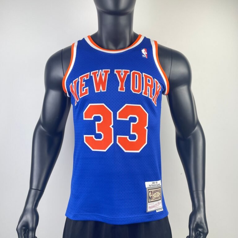 MN Fan Version Hot Pressed Retro Jersey: Knicks 1991/92 Season Blue No. 33 Ewing