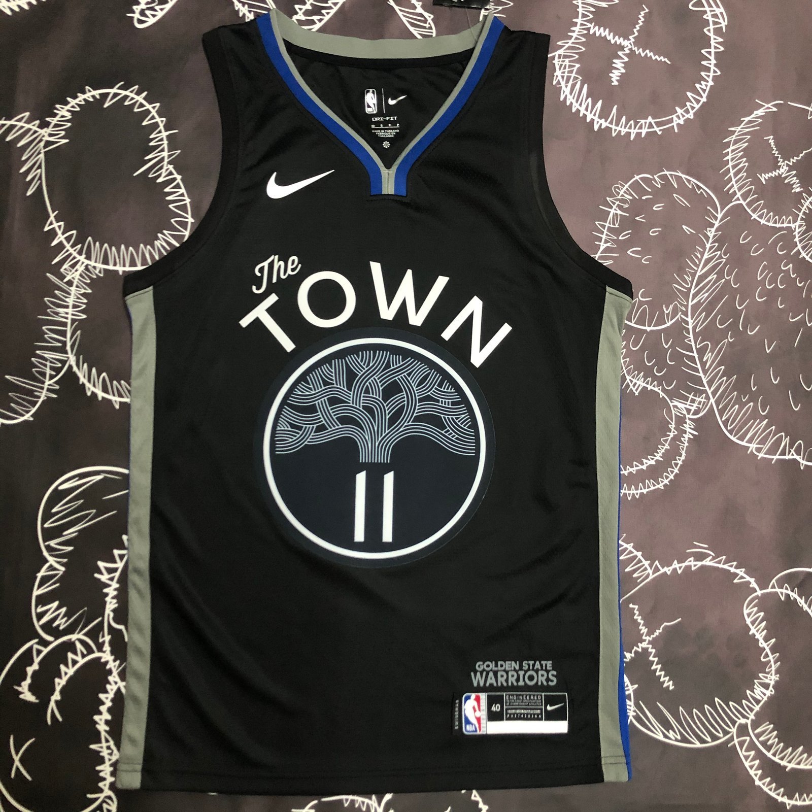 20 season warriors black and Gray no. 11 Thompson